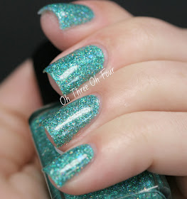 Do You Paraiba? is an aqua-turquoise holographic microglitter accented with assorted small turquoise shapes like diamonds, stars and squares. These photos are 2 coats over bare nail.